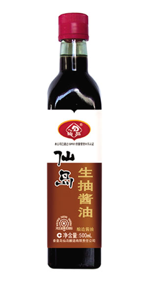 2、仙島生抽:以非轉(zhuǎn)基因大豆、面粉為主要原料,人工接入食用曲種經(jīng)天然露曬發(fā)酵而成。其色澤紅潤,滋味鮮美,豉味濃郁,風(fēng)味獨特,適用于炒菜和涼拌菜。