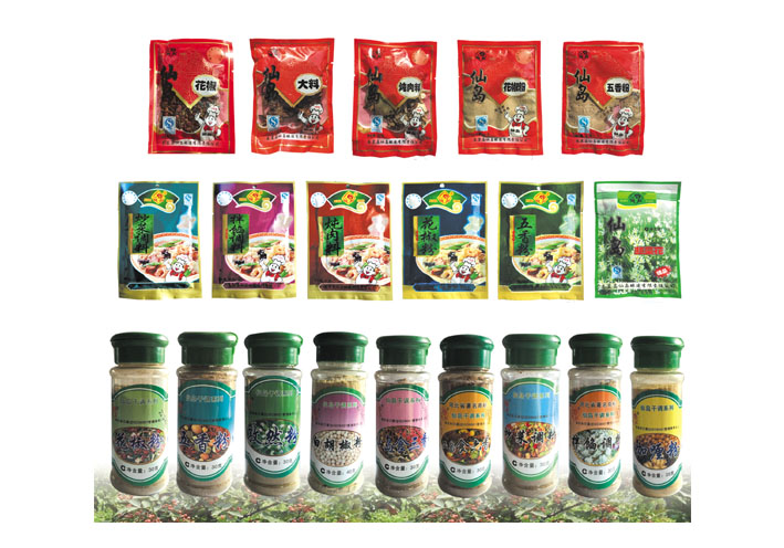 四、干調(diào)料:包括花椒、大料、胡椒、燉肉料、拌餡料、炒菜料、食三香等二十多個品種。產(chǎn)品選用天然優(yōu)質(zhì)香辛料,采用祖?zhèn)髋浞骄贫桑谖抖鄻樱L(fēng)味獨特。適合家庭、飯店及院校食堂等使用。